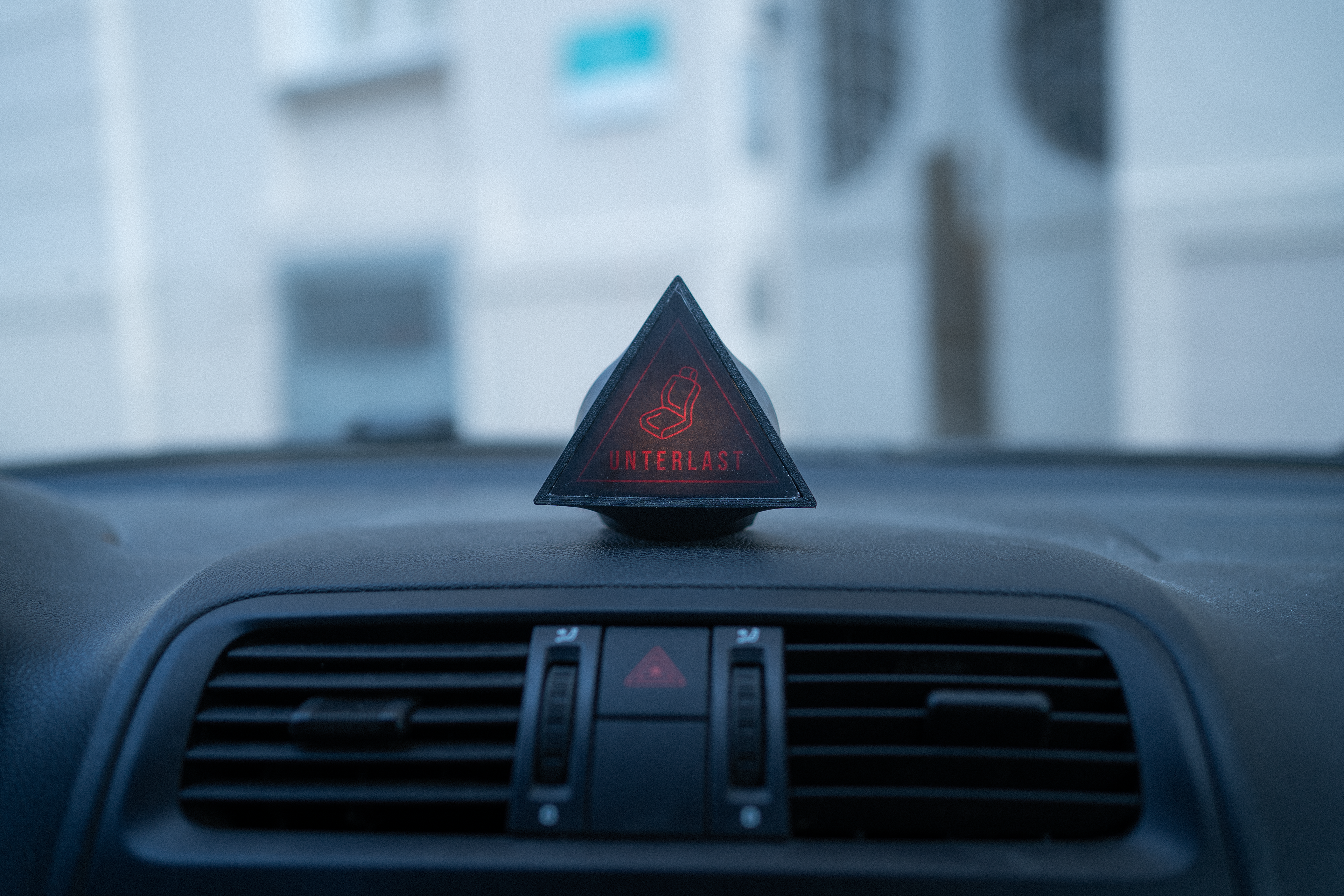 On the roof, an LED panel displays the intended travel destination, turning a private route into public information. Seeing this raises a simple question: where are all the other cars going, and how many people are inside them? In the car, a small illuminated sign reading “UNTERLAST” indicates when the vehicle is underloaded. If there are too few passengers, the ignition remains locked. Conversation becomes a prerequisite for mobility.